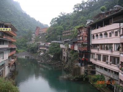 ウーライの滝は落差80メートル。なかなか見応えがありました。滝へはトロッコ列車(片道50元)がありますが、帰りはゆっくりと川沿いの道を散策しながら商店街まであるいてもよさそうです。深緑色の川も神秘的でした。