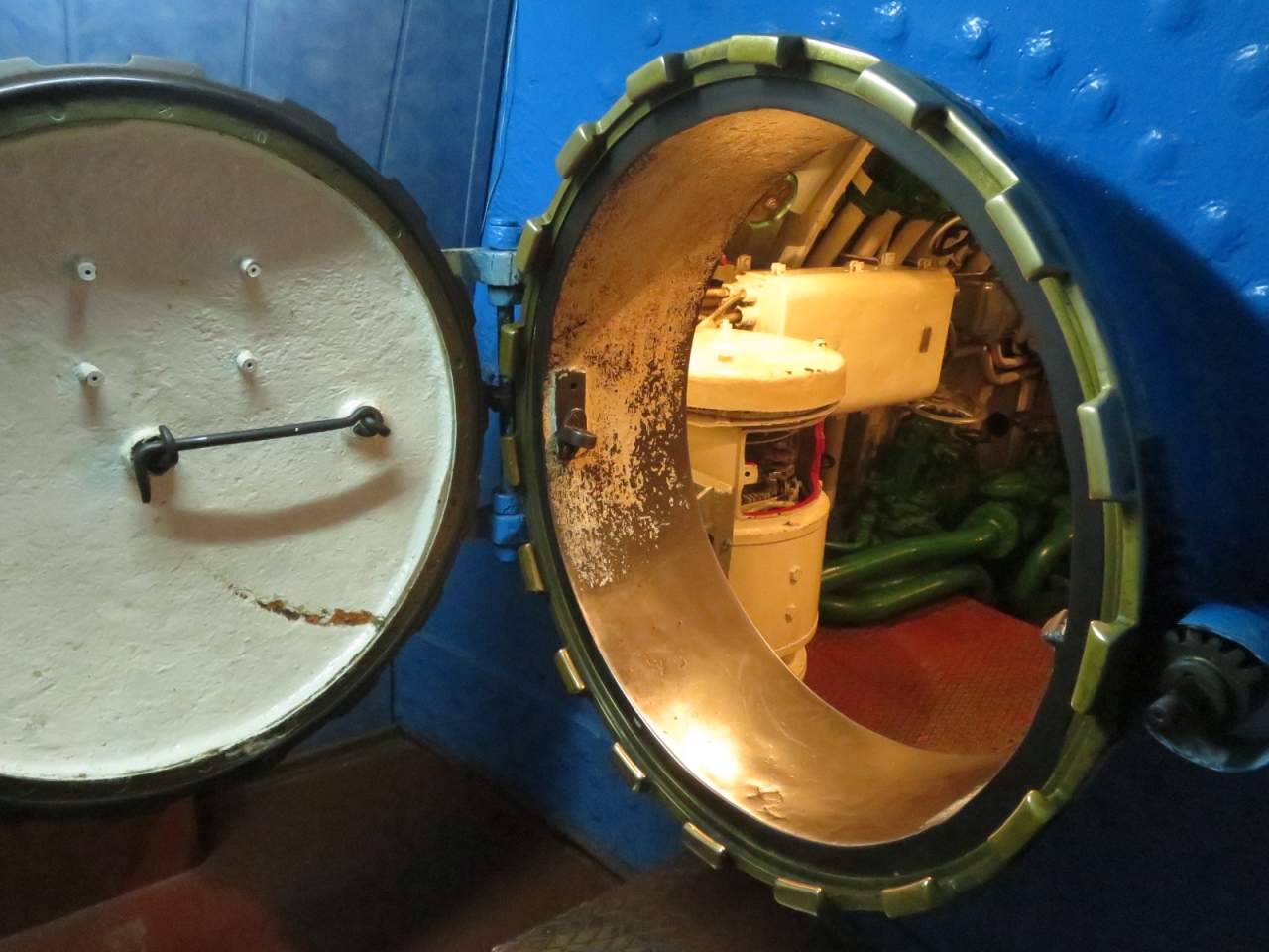 士官室のゆったりとした空間とは裏腹に、船員の休憩室は頭上やすぐ隣に魚雷があるなど、興味深いものでした。