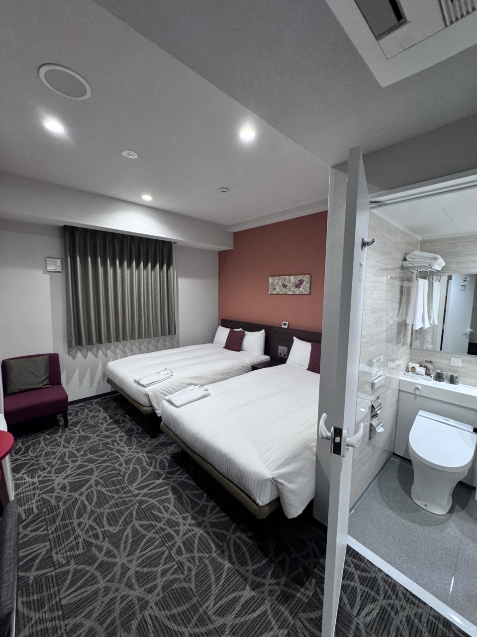 一人だと充分過ぎるくらい客室は広く、清潔で、アメニティも揃っており、全く不満はありませんでした。
