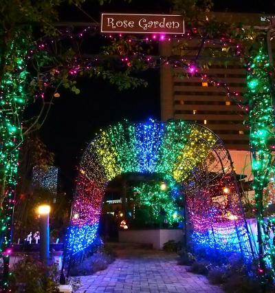 250坪あるスペースは、池やアーチなどもある庭園となっており、様々な色のイルミネーションで彩られています。