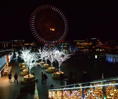 横浜みなとみらいには、あふれるほどのイルミスポットがありますが、中でも赤レンガ倉庫では、ドイツクリスマスマーケット風のヒュッテが並び、赤レンガ倉庫と相まって、そこだけ外国のクリスマスのような風景です。