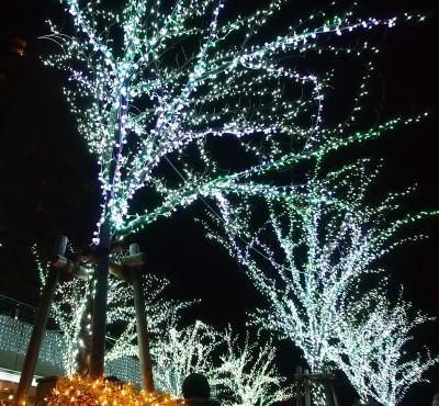様々な色、様々な形の植物にイルミがデコレーションされているので、雑然とした感じですが、それでもこれだけまとめてイルミが駅近で見られるのは嬉しいです。