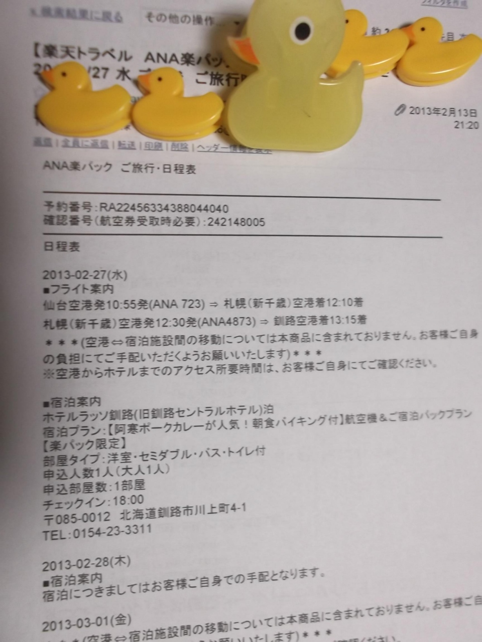 ただ、忘れ物をしてしまい、その時のホテルアクシアイン釧路さんには感謝しています。