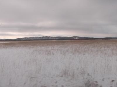 目の前が風蓮湖のレイクサンセットさんです。湖には、タンチョウさん、オナガガモさんが泳いでいました。オーナー曰く、この風蓮湖で繁殖中のツガイのタンチョウさんで、片方が巣でタマゴを温めて、もう一方のタンチョウさんが餌を探しにやってきたとのことです。