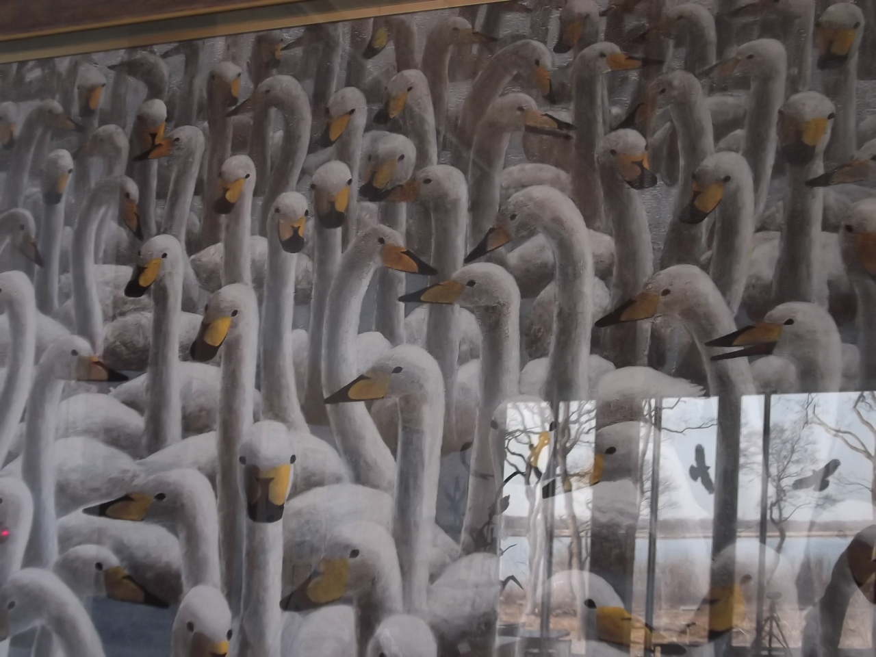 日本で3番目にラムサール条約を締結しました。また、湖のほとりには、水鳥観察館もあり、ハクチョウさんに関する展示、資料もたくさんそろっていました。雪や雨の日には観察館から、コハクチョウさんやカモさんたちを観察できるのでとても便利です。