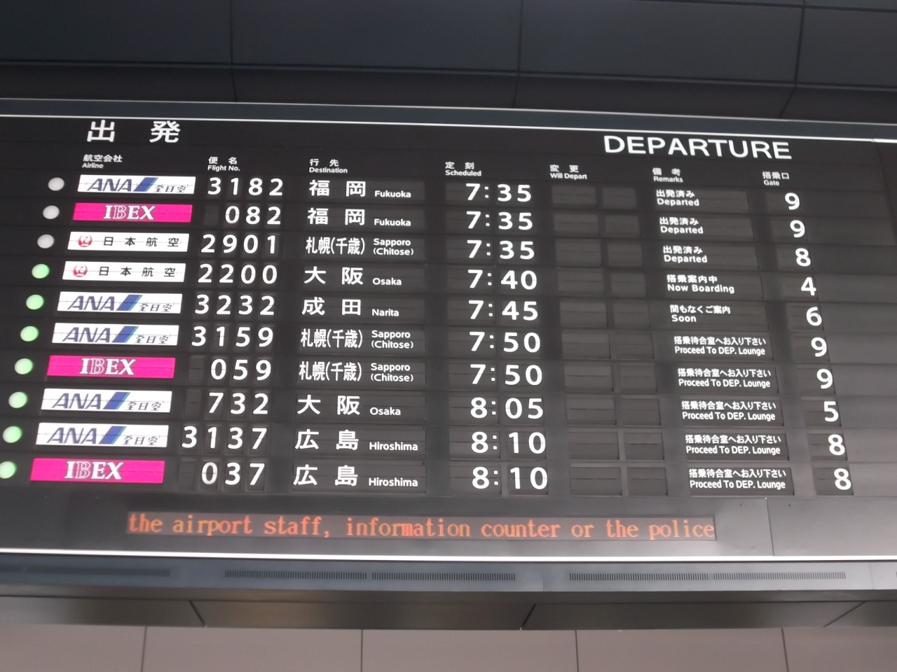 それに、レガシーの日本航空の新千歳、伊丹、福岡便。全日空が新千歳、成田、中部、伊丹、福岡、那覇便があります。