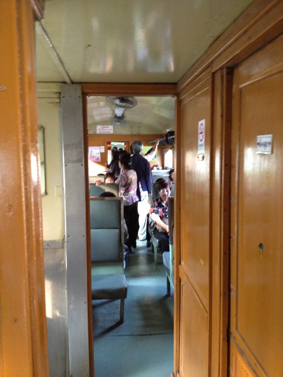 泊まっていたホテルが線路の脇にあり、そこに停留所があるのを発見、時刻表を確認すると、ここに停まる列車は1日片道6本ほどしかありませんでしたが、ちょうどうまい具合に飛行機出発の2時間ほど前にドンムアン駅に着く列車があったので、乗ってみることにしました。