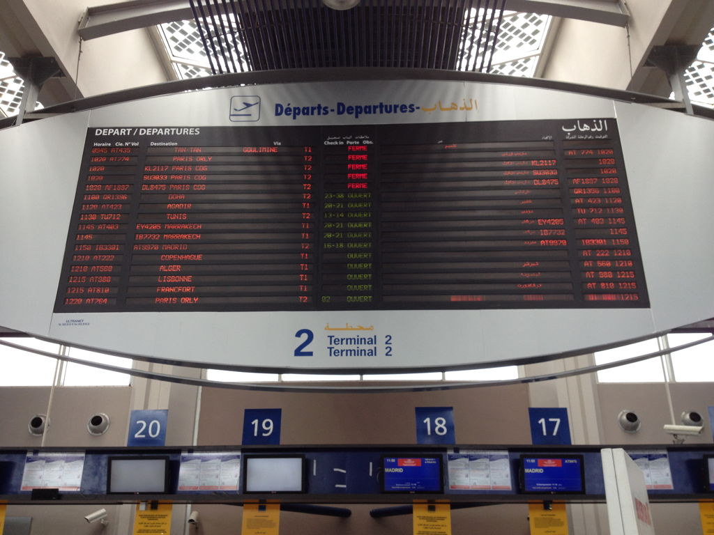 空港の地下のAeroport Med V駅までCasa Voyageurs駅から1時間毎に電車が出ています。