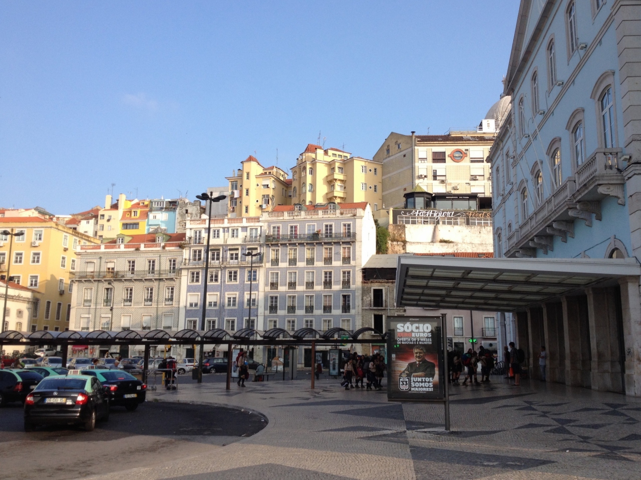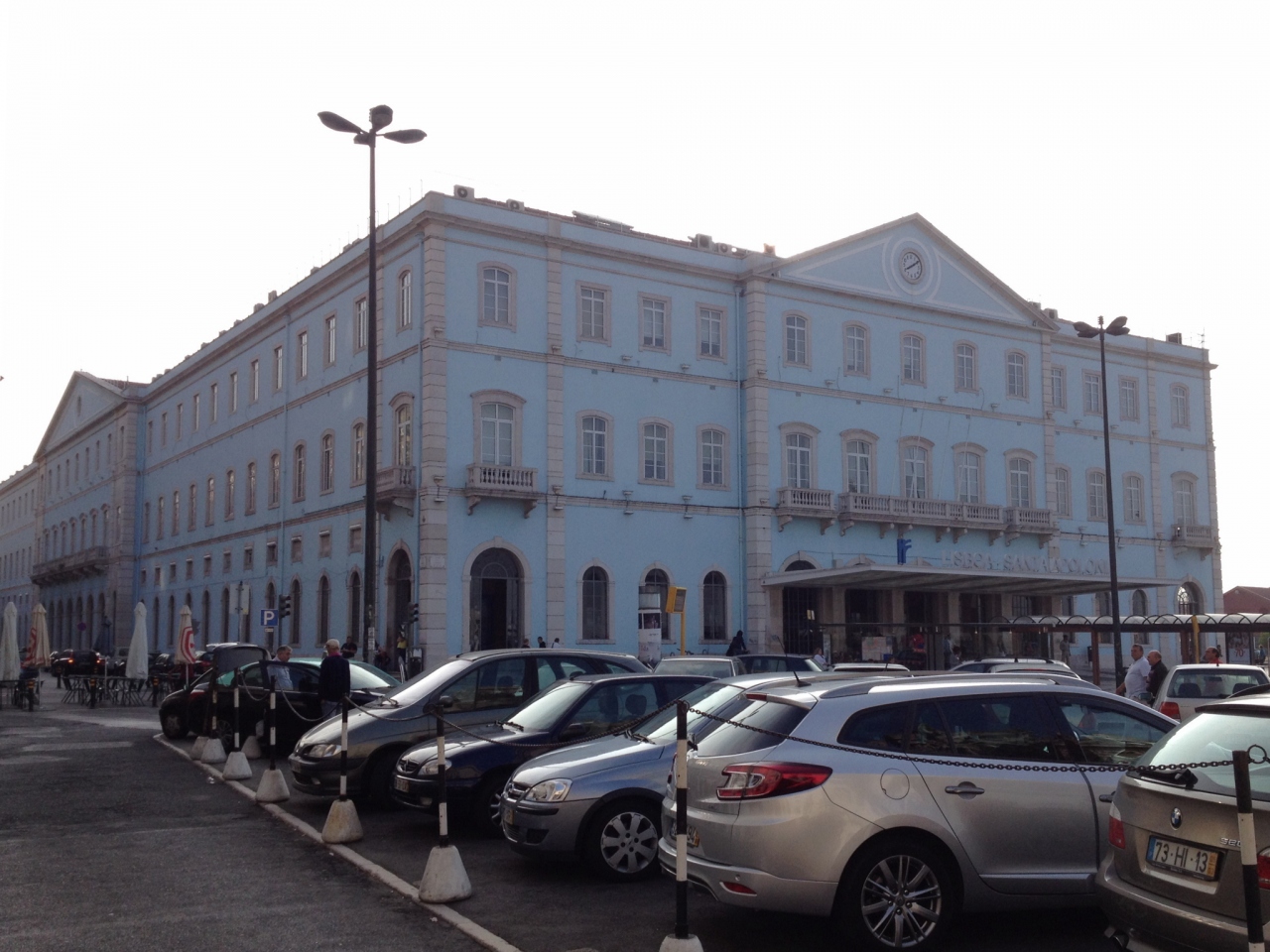 水色で小さな窓がたくさん並ぶ駅舎はホテルのようにも見えます。また駅のすぐ脇には丘の斜面に並ぶかわいらしい建物が見え、ポルトガルらしい雰囲気を感じました。地下にはメトロ青線の駅があって市内中心部への移動も便利。また駅前ではタクシーがたくさん客待ちしていました。