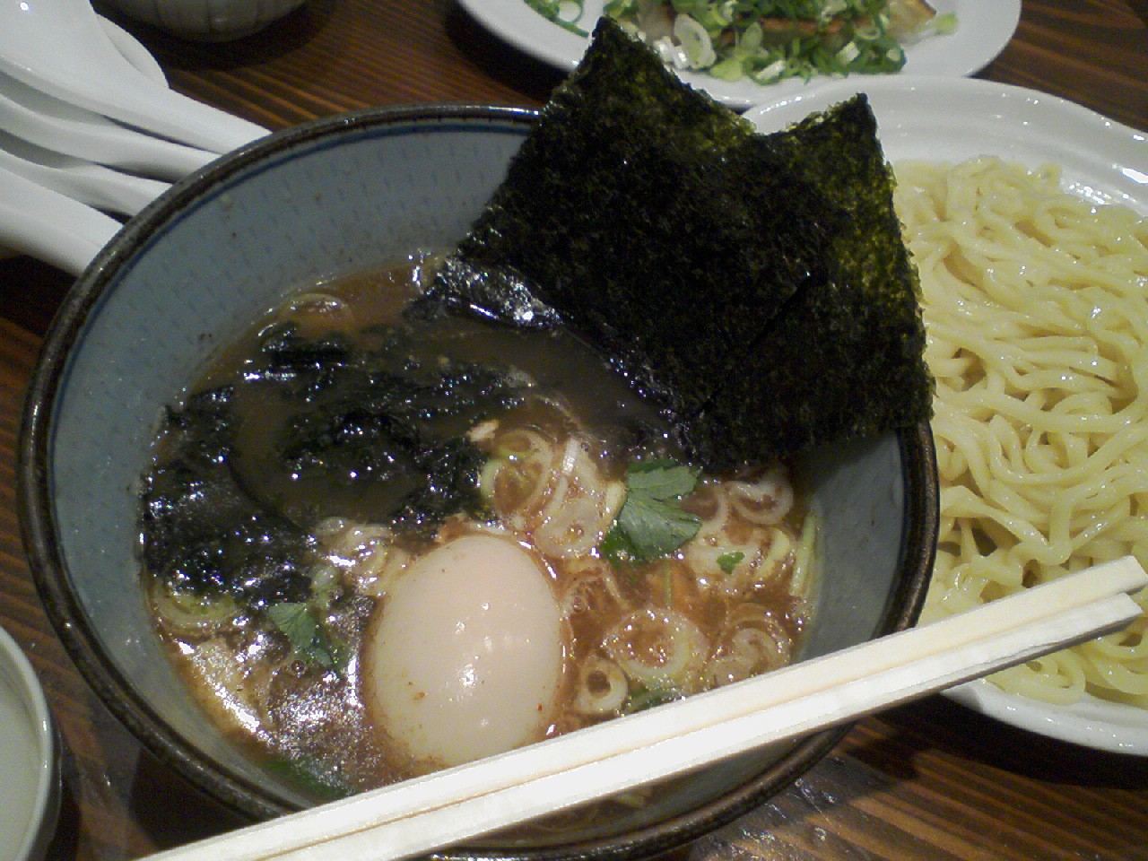 初めてのお店なのでラーメンを試したかったのに、この日はとにかく暑くてダーリンの真似をしてつけめんをチョイス。