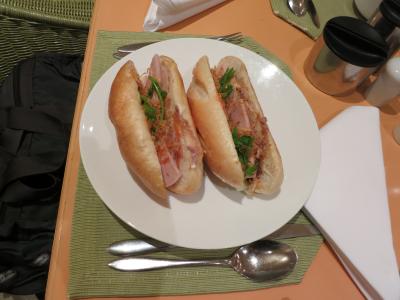 レストランのメニューは多彩で、ディナーの時間にはクレープも手作りしてくれます。バインミーもなかなかの味です。