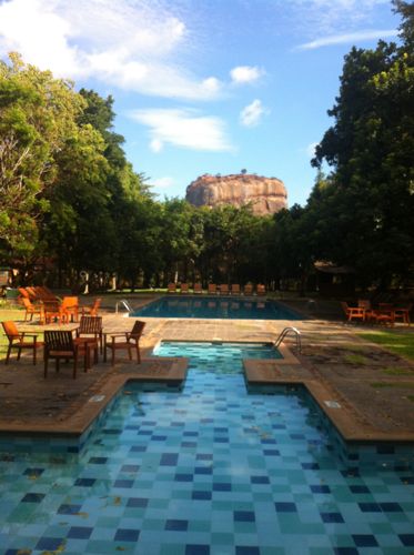 ホテルのプールから見たシーギリアロックが名物のこのホテル。本当に素敵なホテルでした!