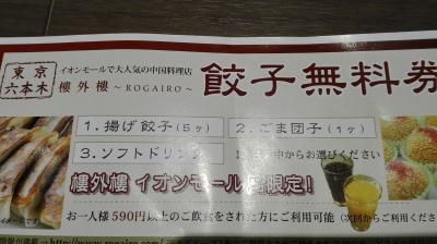イオンモールでショッピング中、ランチを食べにフードコートに行ったら、ここのお店で590円以上のオーダーで使える餃子サービス券を配っていました。