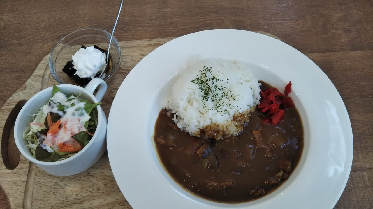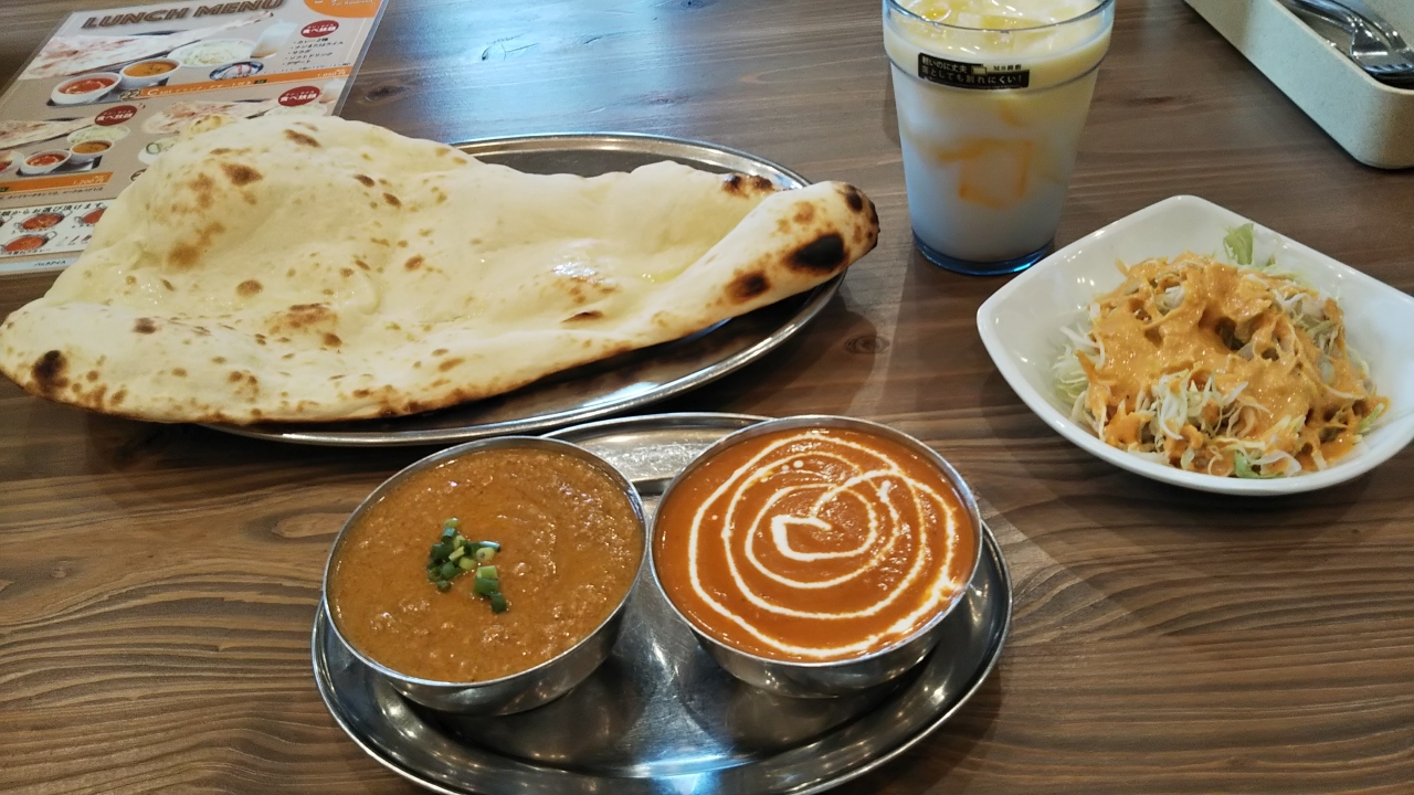 Gotoイートでランチ予約をしていきました。予約と伝えると予約者専用メニューを渡され、見ると1,050円~でした。予約でなければ事前にwebでメニューでみたようなAセット650円が食べられたのかなと思います。私が頼んだCセット1050円はカレー2種、ナンまたはライス(食べ放題)、サラダ、ソフトドリンク、デザートでした。カレーはバターチキンとキーマにしました。ナンもカレーも普通においしかったです。が、私にはナン1枚で満腹でとてもおかわりできず、カレーも1種類で十分でした。