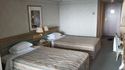 客室ですが、13階だったので景色が良かったです。ベッドが2つあり、それ以上の人は自分で畳に布団を敷いて寝るスタイルでした。