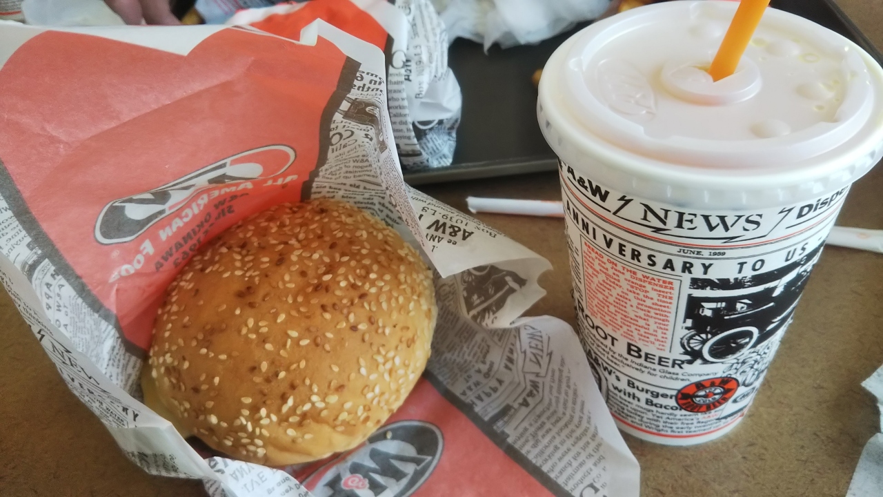 沖縄ローカルのハンバーガーショップ。アメリカンな雰囲気です。ルートビアという飲み物が有名だそうです。人のを一口もらいましたが、薬草のような味のする甘い炭酸飲料でした。県内では自販機やスーパーでも缶やペットボトルで売っています。フライドポテトもマックなどのとはちょっと違う独特のもの。バーガーもボリューミーで美味しかったです。チキンバーガーもありましたが、断然ハンバーガーの方が美味しかったです。