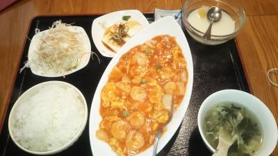 頼んだのはエビと玉子のチリソースです。デザートに杏仁豆腐もついていてうれしい。