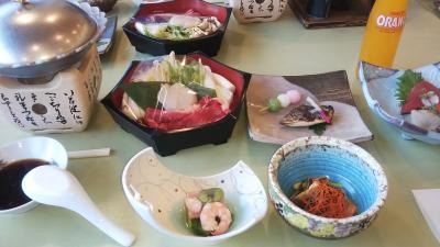 お料理ですが、夕食はスタンダードな会席。品数が多く、季節のものもあり、また量も多くて食べきれないほどでした。料理少な目プランもある様なので、そちらでも良かったかな。子供達には幼児用と小学生用のメニューをお願いしました。どちらも子供が好むメニューでした。(ちなみに小学生のハンバーグプランはサラダ、ハンバーグ、揚げ物、刺身、茶わん蒸し、コーンスープ、デザートの豪華なもの)朝はバイキングで、こちらも品数豊富で満足でした。難点はバイキングの開始時間が7:30と8:00の2部制のため、この時間行列ができていました。