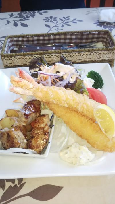 ランチメニューは1000円からありました。私はエビフライとカットステーキのCランチ、連れは2000円のサーロインステーキのGランチにしました。