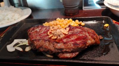 席で待っているとステーキが運ばれてきます。鉄板の上でジュージューと音を立てて美味しそう。特製のステーキソースをかけていただきました。このソースが味濃い目で美味しいです。ご飯が進みます。