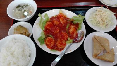 定食はメイン料理+キャベツの千切り+スープ+ザーサイ+春巻き(中がカレー味のマッシュポテトのようなもの)が付いていました。ボリュームあってコスパがいいです。エビチリはそんなに辛くはなく、エビがプリプリで、美味しかったです。ご飯が進む味でした。