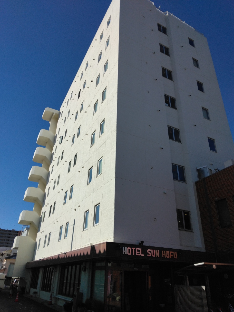 防府駅の北側の天神口から、駅前の大通りをまっすぐに行って徒歩6~7分でした。ホテルの近くに大型スーパーがあるのが便利でしたし、飲食店もわりとあって立地も良いです。