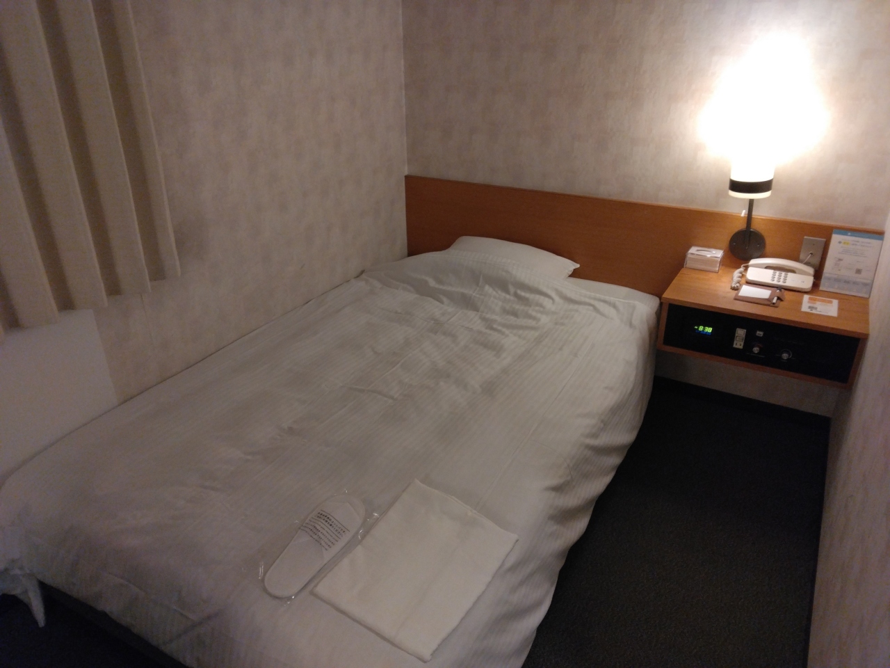 出張での一人宿泊なのでシングルで予約しました。部屋はセミダブルだったと思います。部屋の広さ自体はそこまでないのですが、ベッドが大きかったですし、掃除もしっかりと行き届いていて清潔感がありました。バスルームもきれいでしたし、快適に滞在できました。