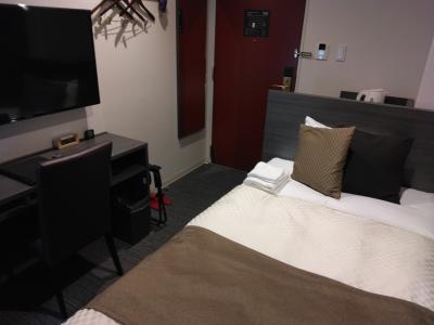 泊まったのはシングルですが、部屋はセミダブルになっていました。部屋のつくりやバスルームなど、ビジネスホテルの定番という感じで、広さもまずまずです。新しくないホテルだと思いますが、きれいさ、清潔感があって快適に感じました。