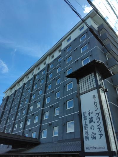 伊賀上野の市街地中心部、伊賀上野城の南側の国道沿いにあります。伊賀鉄道だと西大手駅が近く、上野市駅からも歩ける距離でした。上野公園が近く、観光には便利な立地でしたし、ホテルの近くにコンビニがあるのも便利でした。