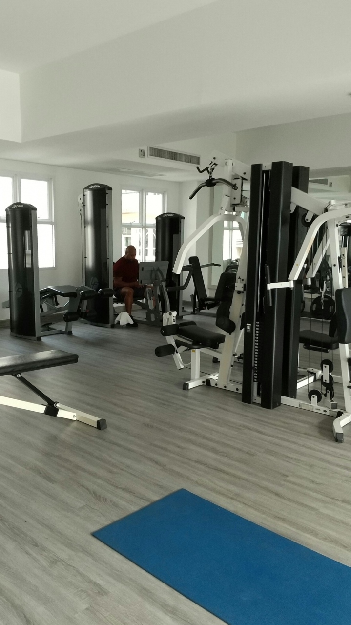 スポーツジムも小さくて、4つほど古い器械が置いてあるだけで、自転車はハンドルがグラグラしていて、危ない感じです。