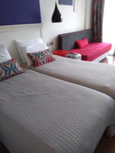 最初入った部屋はシャワー部分が耐え難いほど狭く、変更して貰った部屋は薄暗く、ベランダも無く、壁紙も禿げた部分が有ったり、かなりレトロな雰囲気です。客層も何だか雰囲気悪く、朝食もお粗末、ただフロントの女性は感じが良くチャーミングな女性で男性も感じ良かったです。