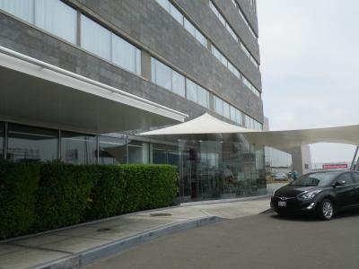 空港隣接というより敷地内です 2階からホテルにつながっています 深夜到着や早朝出発の際には大変便利です ウエルカムドリンク 朝食付きでキャンセル不可のプランで145ドル位でした 日本の空港隣接ホテルと同額位でしょうか? 部屋やホテル内のサービスに不満は無いのですが 次のホテルへのタクシーを頼んだら 暑い中上下のスーツを着込んだ ホテル専属のタクシーが 料金を70~80 次に90 車に乗り込んでから 120ソルと次々に変更してきました 呆れてキャンセル 空港のグリーンタクシーに乗ると ホテルを勧誘してきます 紹介すると30パーセントマージンが入るとのことで タクシーにはくれぐれも気をつけましょう 空港での手厚い洗礼を受けます 次のホテルで送迎をお願いする方が賢明です