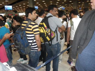 今回国内でも出国時かなり並んで イライラさせられたけれどまさか 爆弾騒ぎの有ったばかりのバンコクスワンナプーム空港でこんなに並ばせられるとは思わなかった 空港職員の数が少ないのか 入国に関して慎重になったのか理由は分からないけれど 列が一向に減らず本当イライラさせられた どうなっているのだろうバンコク