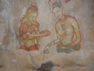 下から見ている分には大変さが伝わりませんが シギリアロックなめてかかると とんでもない目に合います 1時間で帰ってこられるだろうと思っていたら3~4時間かかりました 途中豪雨に2回も合って これって大丈夫? と本当思いました 何しろ風は強いし急坂だし急階段出し 足でも滑らしたらただではすみません まあ一度行って見てください 但し体力がある人限定ですが ああこの壁画が有る地点から一度降りて又登ります 本当大変でした