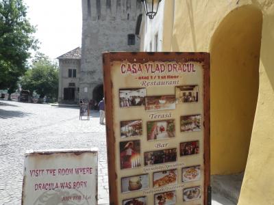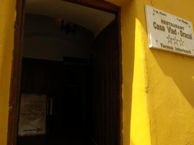 ドラキュラ ルーマニアでは有名らしく このレストランの前はいつも団体客で賑やかです レストランも繁盛している様ですが 口コミだと値段が料理に比べて高めだとか書いて有りました話のタネにコーヒーだけでもとも思ったのですがお昼時だったので遠慮しました雰囲気だけでもと入店するのも悪くないかもです