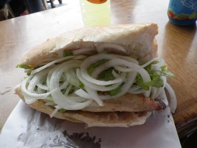 一口目は美味しいです 二口目からは微妙です でも鯖サンド超有名なので食べないで帰る手は有りません 鯖をフライにしているのを想像して居ましたが 塩焼きにしているだけなので かなり生臭いです テーブルに載って居るレモン汁をこれでもかとかけたのでビシャビシャになりました 殆どというか全然味付けされて居ません 選択しは塩味かレモン味だけです だけどかなり 玉ねぎが入って居て レタスも少々入って居るので ボリュームは有ります お腹は膨れます ランチには良いでしょう・・ただし 生臭くホテルに帰っても部屋に臭いが籠って居ました