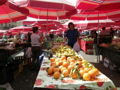 楽しい所です お土産屋さん 果物やさん 魚屋さん肉屋さんと 色とりどりのパラソルの下開店しています 特に時期にもよるでしょうが イチゴやサクランボがお買い得でした イチゴ1キロ 150円位 サクランボ1キロ200円位と信じられません イチゴは鉄道駅前でも販売されて居ました その安さに勇んで購入しましたが 日本の物と比べると甘味が薄いです 二日続けてイチゴとサクランボを購入したので 他の物が食べられない位満腹になりました