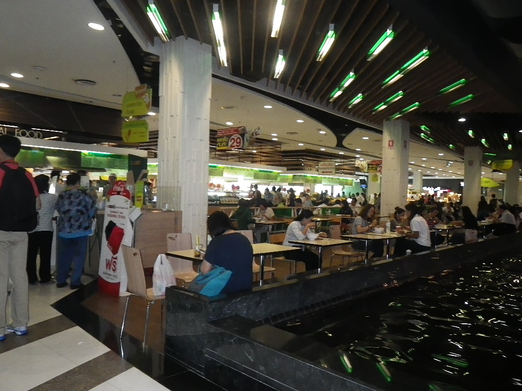 バンコクでは屋台で食べるのを常としてきましたが このところ衛生面や空調の事を考えてフードコートを利用することが多くなりました ここのフードコートは広く綺麗で 種類も豊富快適に利用できます 頼むのはいつもタイ風麺かぶっかけごはん ソムタム位でしょうか? 1品50~70バーツ位 現地のタイ人より質素な昼食です