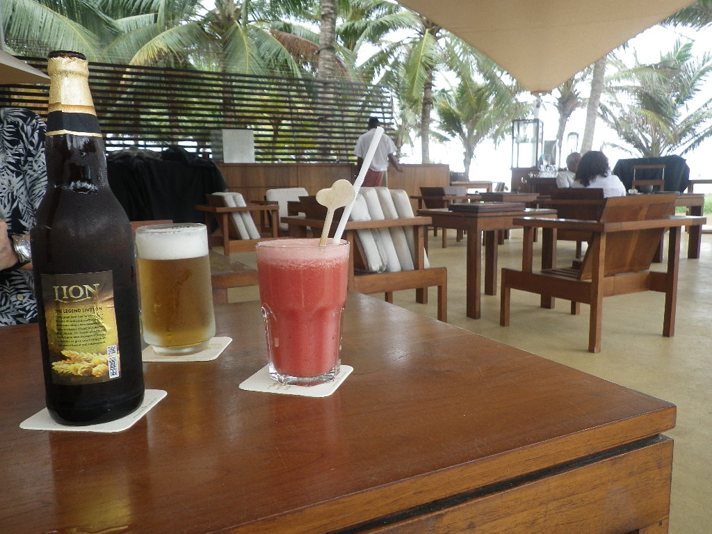 宿泊はせずにカフェだけの利用ですが 多分ネゴンボで一番大きく豪華なホテルでしょう? ビーチ沿いに建っていていかにもリゾートホテルという感じです ビーチ沿いのカフェは開放感が有り 隣接しているプールで泳いだ宿泊している西洋系のファミリーが シャワーを浴びた後何か羽織って くつろいで居たり 小さな子供ずれのファミリーや カップル等が ゆっくりと ビールやジュースを飲んで寛いでいました ビールとスイカのジュースを頼み 税金+サービス料込みで750ルピー位でした