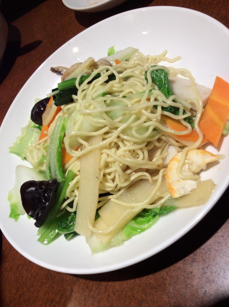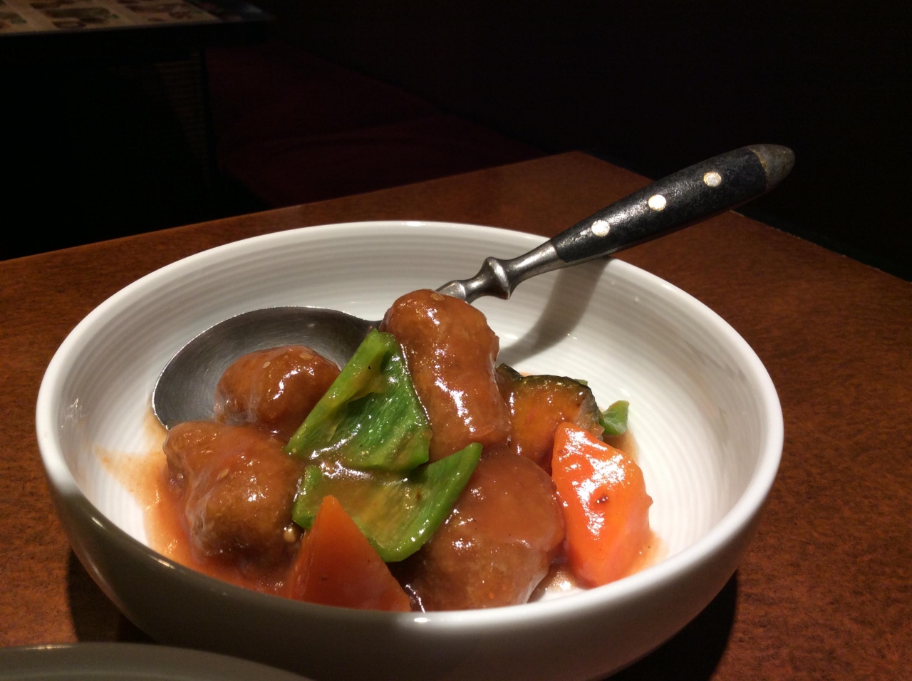 思いましたが、野菜のおかずと豚肉風酢豚合わせて3皿と麺を1つずつ頼んだら、かなりお腹いっぱいになってしまいました。
