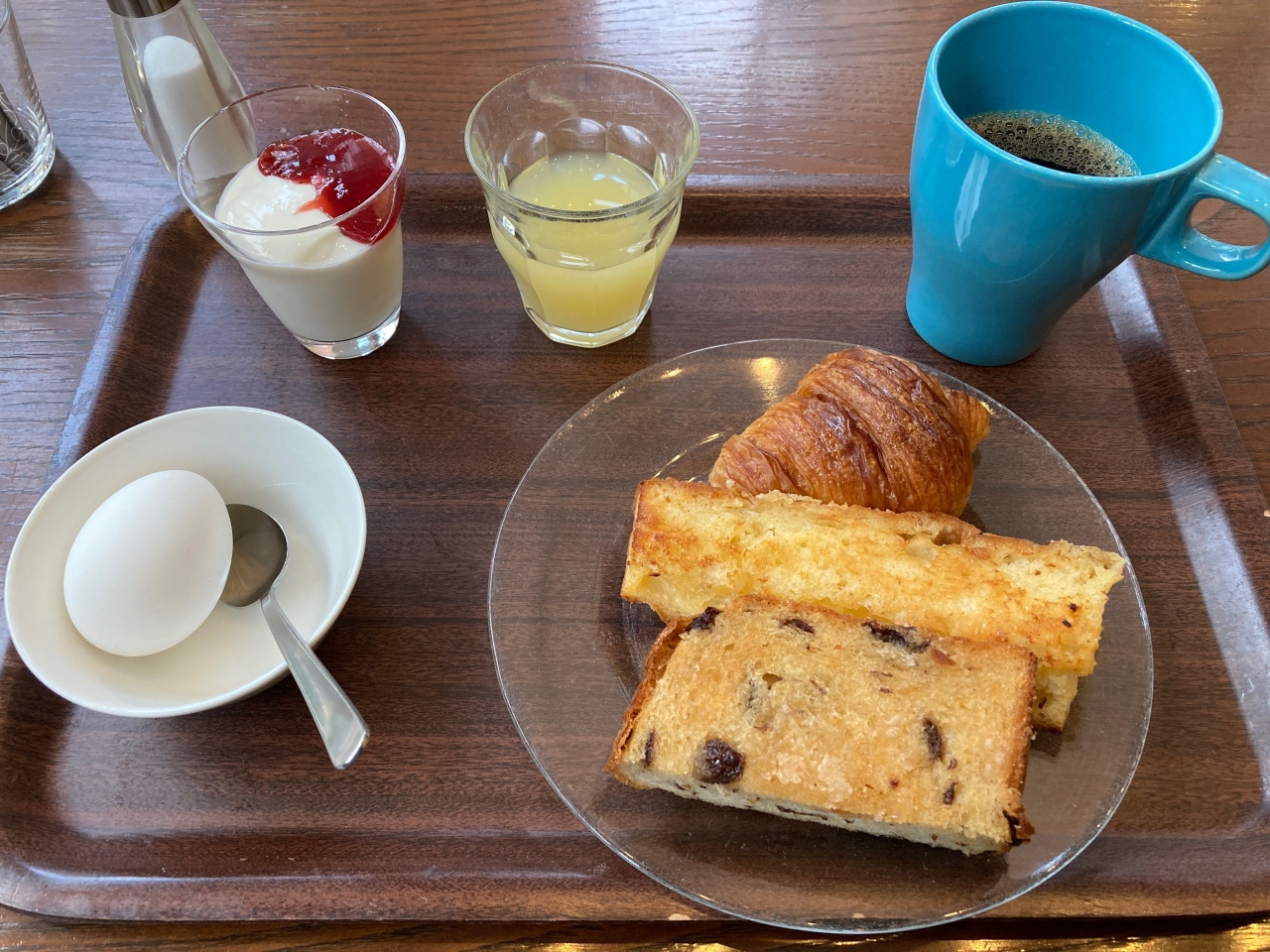 朝食はシンプルですが、地元の人気?パン屋さんの、