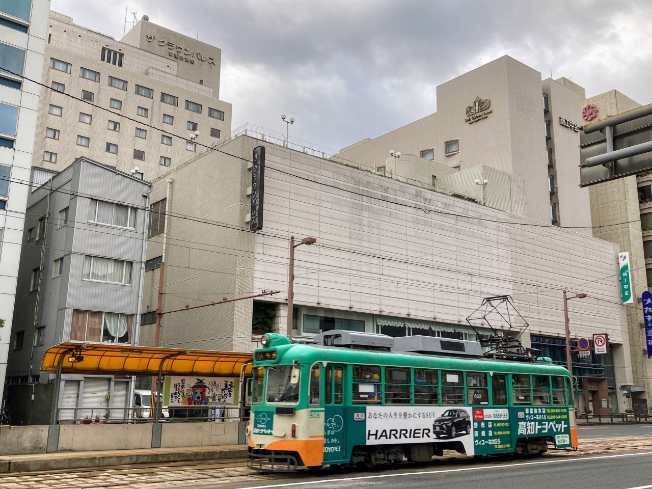 とさでん、路面電車の「高知城前」の目の前にある、大型ホテル。