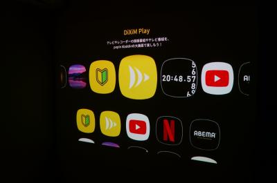 TVがなく、プロジェクターで壁に映して見るタイプ。