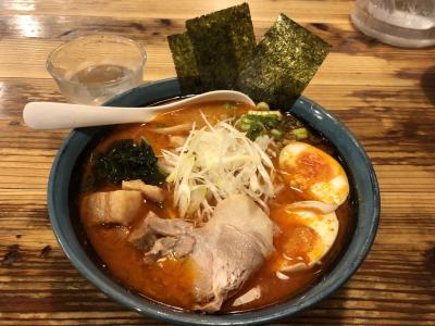 スパイスラーメン卍力。名前通りスパイスがきいています。パクチーが苦手な方はネギに変更できます。食事の時間帯は並んでいますが、ちょっと時間をズラすとほとんど並ばず入れます。スープの色が赤黒っぽいので辛いかと思ったら、そんなに辛くなかったです。チャーシューはジューシーで柔らかくて美味しいかったです!
