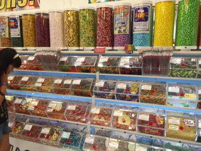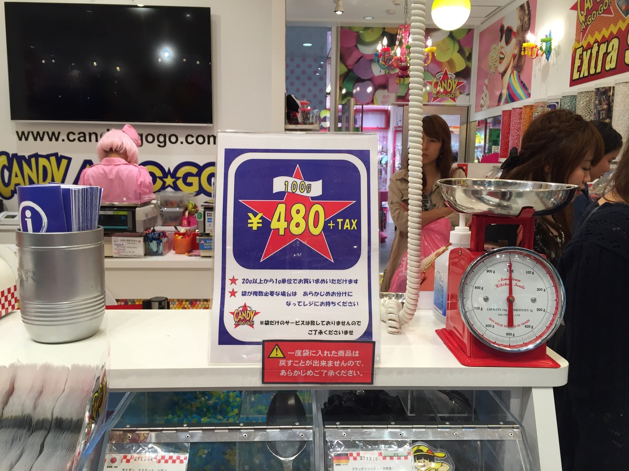 原宿竹下通りの真ん中あたりにあります。ガラス張りのお店の中にはカラフルなお菓子がたくさん。量り売りなので、欲しいものが好きなだけ買えます。100gで480円(税別)です。袋に一度にたくさんお菓子を入れてしまうと、かなりの金額になってしまうので、店内に置いてあるハカリで確認してから少しずつ入れましょう。