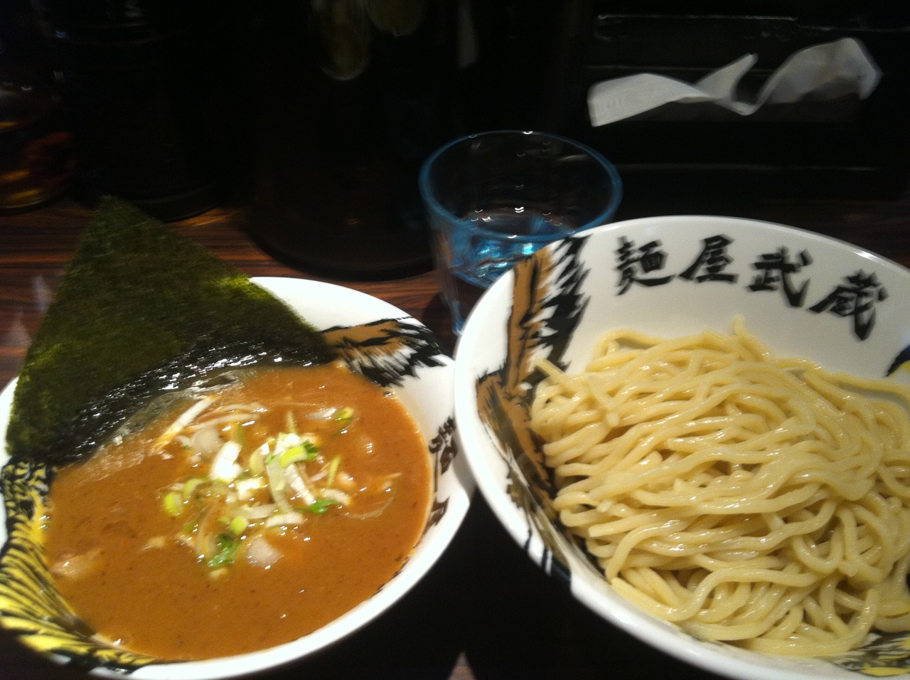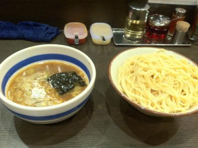 JR池袋東口を出て三菱東京UFJ銀行の手前を右に曲がったら見えます。入口で食券を買うのだけど、初めてだったので「?」。どれを買えばよいのか店員さんに聞きました。「もりそば」というのが、普通(?)のつけ麺でした!味は安心して食べられる味でした。