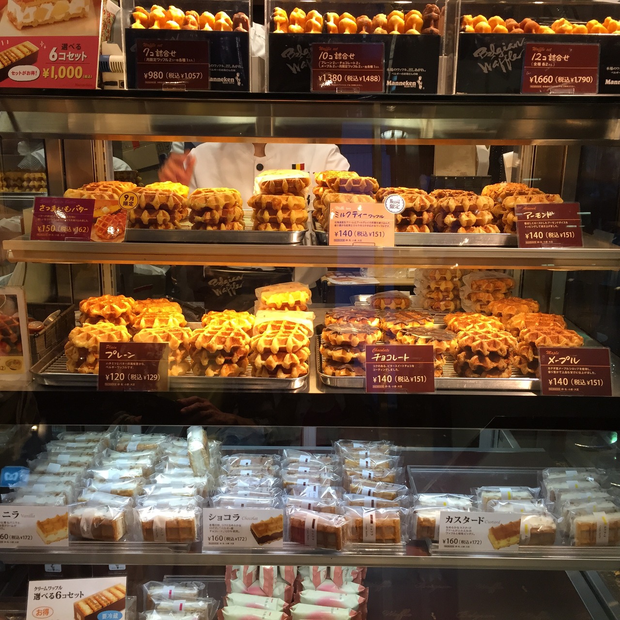銀座4丁目の交差点のすぐ横にあります。お店の前を歩くとワッフルを焼いている甘い香りがしてくるので甘いものが好きな人は誘惑されます(笑)。毎月、季節限定の味が変わります。いつも数人が並んでいますが、そんなに待たずに買えます。
