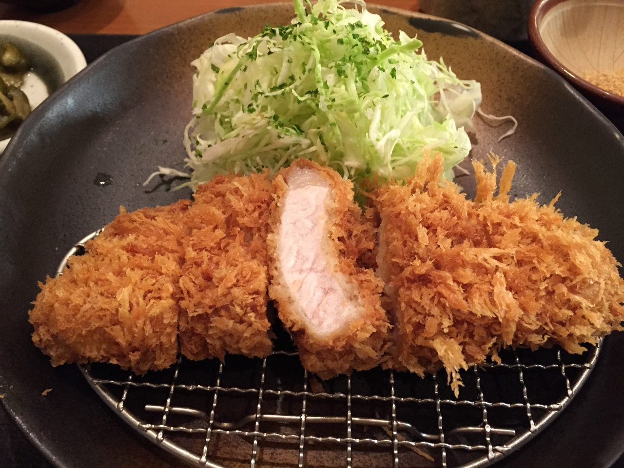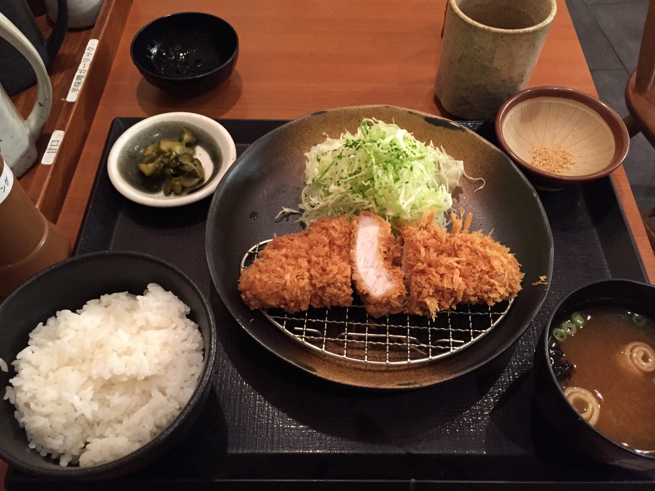 ミッドタウンB1Fにあります。平日15:00-18:00は、ハッピータイムで「三元豚ロースかつ膳100g」(画像)が¥650(税抜)です!しかも、キャベツ・白米・味噌汁はおかわり自由です。揚げたてでサクサクのコロモのかつはとても美味しいです。