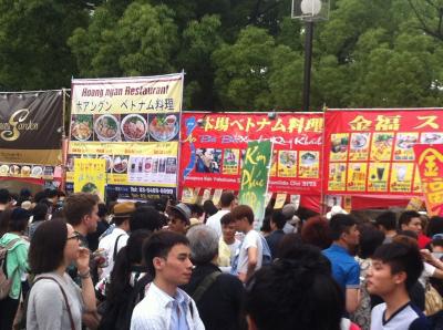 とにかく混んでいて人がいっぱい。どの店も長蛇の列。民芸品のお店にはカラフルな服や小物。食べ物を売っているお店はいろいろなベトナム料理。人が多くて圧倒されるけど、どの店も美味しそう。毎年開催されているので、来年も楽しみです!