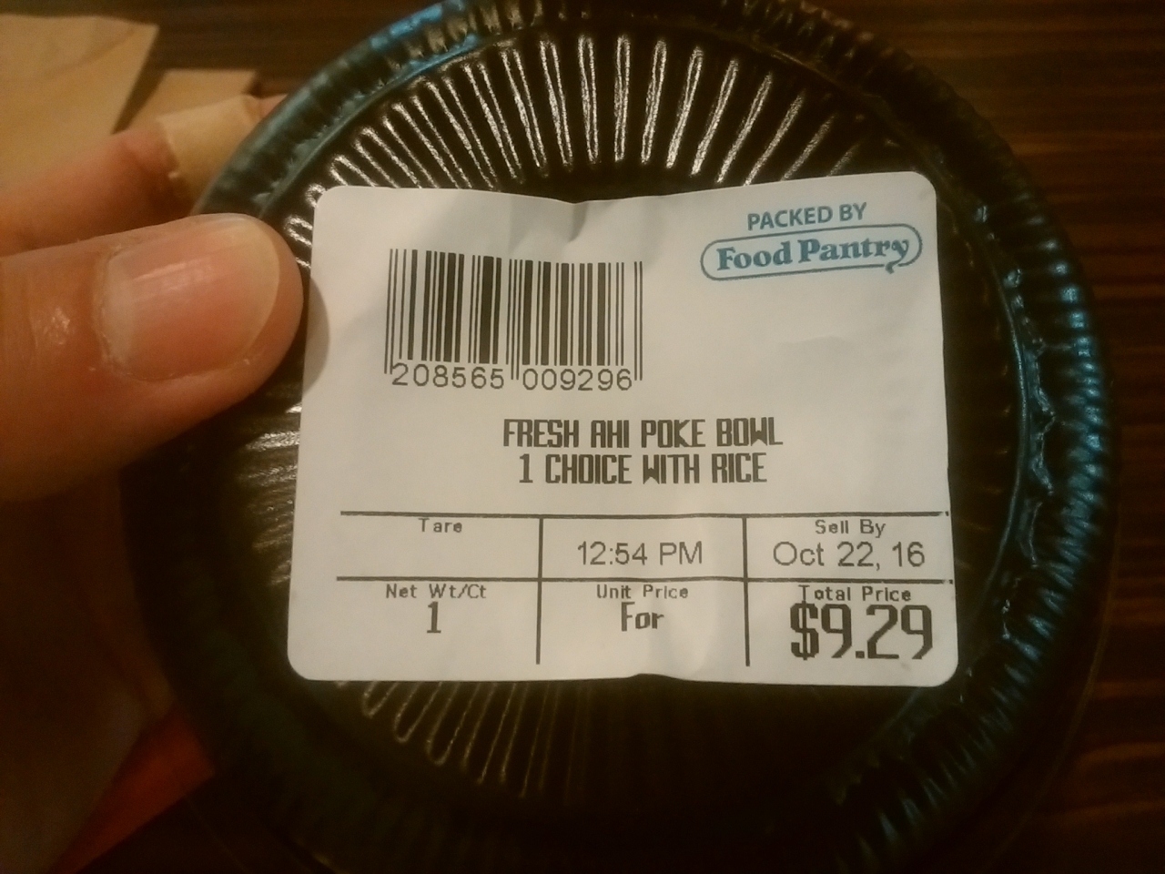 フレッシュアヒのポケボウル 税込みで$9.73です!